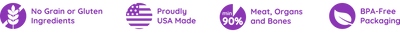 | Ingredients | ✔️ Whole chicken & organs | ⚠ By-products | ✖️ Fillers & grains |